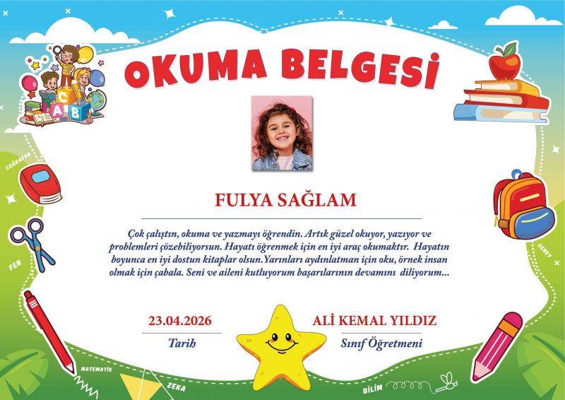 Okuma Yazma Başarı Belgesi